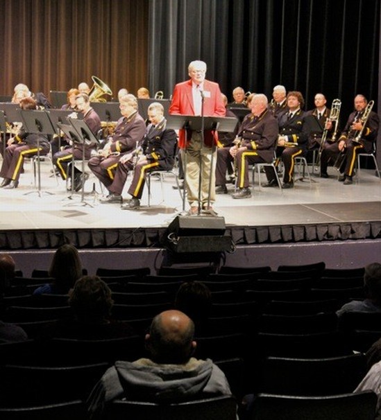A Monologue on Karl King was given by Larry Mitchell who knew Mr. King personally. Mr. Mitchell directed the Fort Dodge Glee Club for many years and the Glee Club always performed at the annual March concert with the Karl L. King Municipal Band, hence a close personal relationship with Mr. King. Mr. Mitchell was the vocal music director in Fort Dodge High School, directed local musicals for many seasons, and leader of the Glee Club shows.
