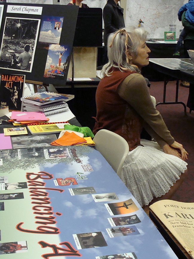 Seen at right is Sarah Chapman, a former circus acrobatic