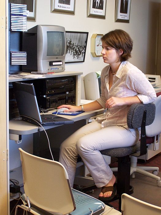Anne Janotta came with Jack Lashier to scan images in preparation for the visual presentation.